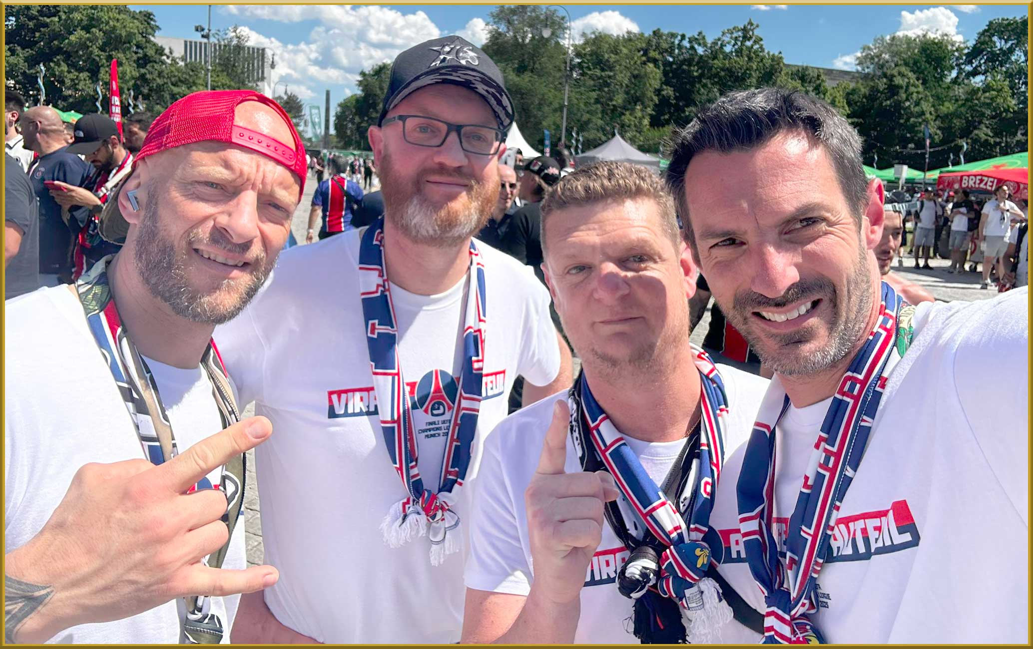Munich ! Putain. Greg, on est en finale, on y est ! Ma mission dès lors c’était d’emmener mon frère en finale ! Il fallait des places, il le fallait… Là encore cela a été un vrai combat, mais sans jamais baisser les bras et puis le destin, pourquoi ? Là encore je ne sais pas, mais l’amitié, le monde ULTRA, la bienveillance, et notre PSG, tous se sont alliés pour que Greg finisse par être du voyage avec moi et les autres : JO, SEB, JP, ALEX et il manquait STEPH ! Ce 31 mai aura été un tournant de ma vie, de notre vie, à nous 3 : Greg, moi et notre PSG !
