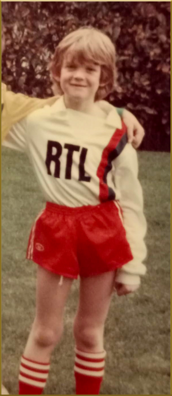 Devant la petite maison qui était la nôtre, chemin de la source non loin de Noisy le roi dans le 78, nous allions jouer au foot en face de la fenêtre de la cuisine. Maman nous surveillait. Avant de sortir, il fallait revêtir l’habit de lumière : c’était maillot RTL deux bandes, short rouge et crampons Patrick puis plus tard adidas, que nous sortions fièrement.